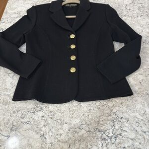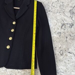 St. John Black Women's hip length knit Blazer with St John’s famous gold buttons