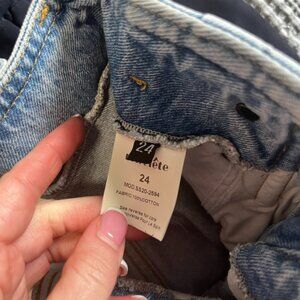 Retrofete Light Blue High Waisted Denim Shorts Size 24. Light blue wash. Classic button & zip fly closure. Side pockets. Cuffed hem. Button detail on waist.