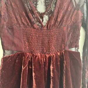 Free People Marlie Lace Mini Dress Burgundy Maroon Small