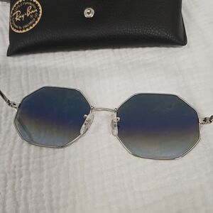 Ray Ban Sunglasses RB 1972 Octagon 9149/3F Silver Frame Clear Gradient Blue Lens