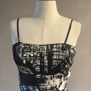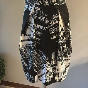 Max & Cleo Black and White abstract cocktail Strapless Sheath Dress satin NWOT 6