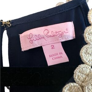 LILLY PULITZER Pearl Dress Womens 2 Metallic Gold Navy Blue Mini Shift