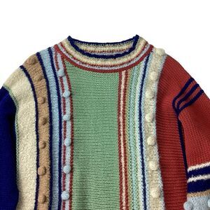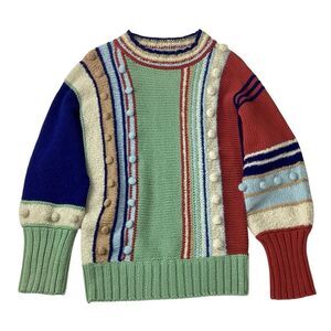 BATSHEVA Size M Sweater Colorblock Striped Bauble Pullover Jumper Chunky Knit
