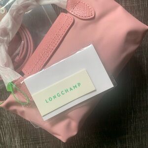 LONGCHAMP Mini Le Pliage Green Top-Handle Bag + Strap - Peony Pink *RARE*