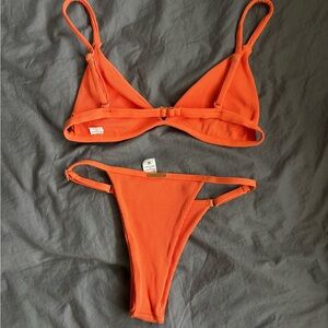 Super cute orange bikini set. Never worn but tags are off. Sz small, thick and soft material. Bottoms are cheeky!