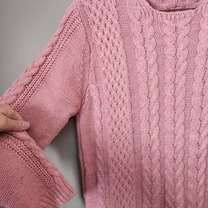 Stay cozy and stylish with this pink cable knit sweater dress. Perfect for any occasion, this dress offers both comfort and elegance.