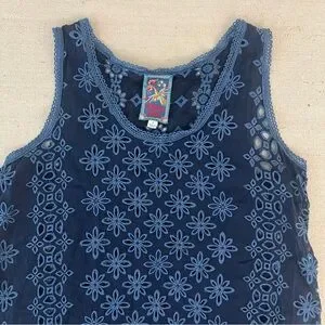 Johnny Was navy blue embroidered eyelet sleeveless tunic top