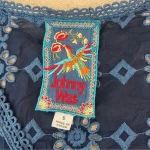 Johnny Was Carden Eyelet Tank Navy Blue Small