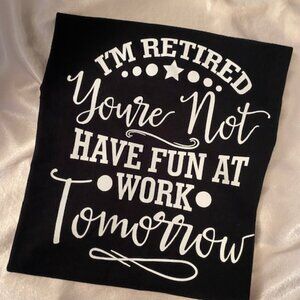 This men's retirement t-shirt is handmade. Great gift for someone who is retired or going to retire. 100% cotton