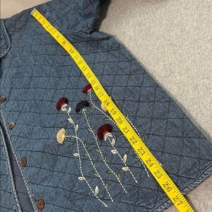 Vintage Quilted Chambray Jacket Womens 2X Boho Grandma Cottagecore Embroidered