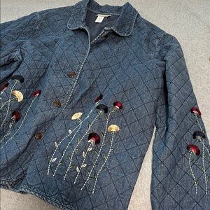 Vintage lightweight quilted chambray embroidered jacket