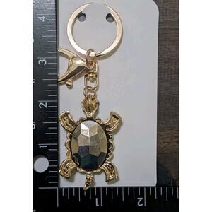 This is a Green Rhinestone TURTLE Keychain. The keychain features a charming turtle design with rhinestones, making it a stylish accessory for purses. It is multifunctional with a key ring for keys. The material includes metal and rhinestones, adding a touch of elegance. This keychain is a decorative piece with an animal print pattern, perfect for those who appreciate unique accessories.