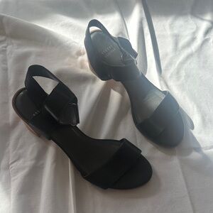 Chic black leather sandals with a sleek design. Ideal for versatile styling.