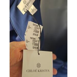 Chloe Kristyn "Silky" blue mini sheath dress. Blue zip up Hardware on back and two side pockets. Fully Lined and dart Bust. Measures 34L x 28 sleeves x 22 dart bust x 20 W x 24 hips. New with tags and MSRP 310$ plus tax. This dress is quality 100% polyester and has a super sheen gorgeous blue color.