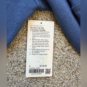 NWT Lululemon Scuba Cropped Full-Zip Hoodie Heathered Obsidian Blue Size 2