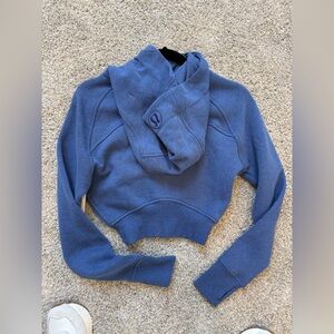 Lululemon Scuba Cropped Full-Zip Hoodie in the color Heathered Obsidian Blue.