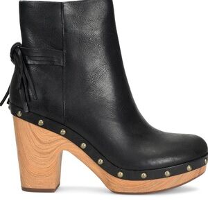 Kork-Ease Black Leather Platform Ankle Boots Wooden Heel Boho Size 11