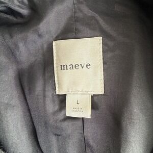 This Anthropologie Maeve blazer jacket in women's size Large features a chic gray tone with a vintage-inspired 1980s boxy, secretary-style silhouette. Designed with long sleeves and a button-front closure, this blazer offers a relaxed fit that's both stylish and comfortable.