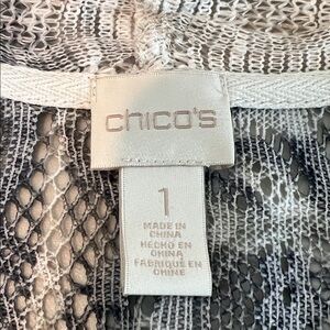 Chico's Taupe and Blue Embellished Open Cardigan with Cutout Pattern -Size 1