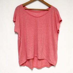 Eileen Fisher pink ribbed high low hemline linen short sleeve shirt women’s size xs oversized great used condition