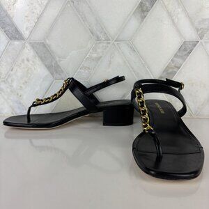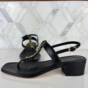6.5M Block Heel Sandal Black Leather Slingback Ankle Strap Veronica Andie Chain