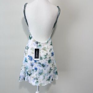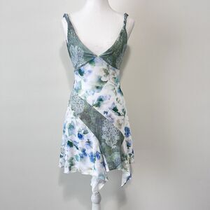 Tiger Mist Theo Floral Asymmetrical Mini Dress Size Small NEW White Green Y2K