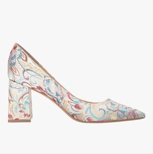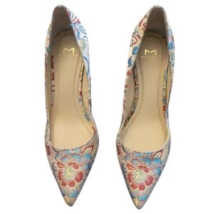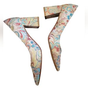 Marc Fisher Zala Pointed Toe Pumps Block Heel Floral Brocade Leather Used 6