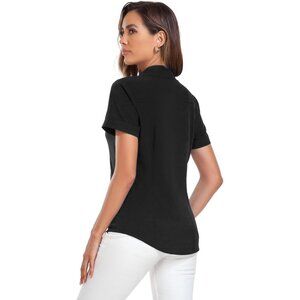 Features: Classic button-front shirt with short sleeves and a slim fit to shape beautifully. Made from a comfortable 95% polyester and 5% spandex blend, it’s soft, stretchy, and ideal for work, casual outings, or date nights. Well-stitched and high quality, designed specifically to flatter curvy figures.