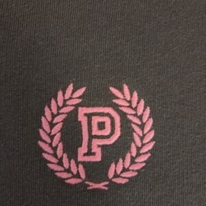 Brown pullover crewneck sweatshirt with a hot pink embroidered P logo on the front. It is in very good shape and true to size!
