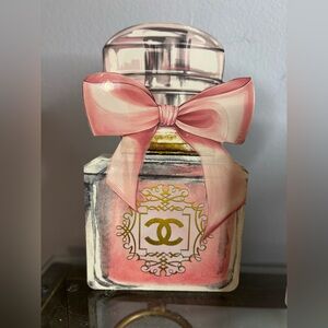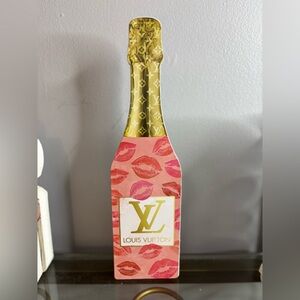 Stylish decorative accents featuring Chanel and Louis Vuitton designs. Perfect for adding a touch of luxury to any space. Includes vibrant colors like pink, gold, and black.