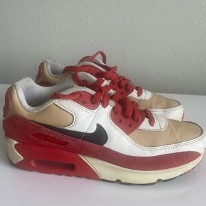 Nike Air Max 90 Leather Sesame Red Clay Running Shoes Youth Sz 5Y