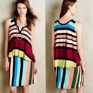 Anthropologie Maeve Layered Davina Dress Rainbow Stripe Size Small