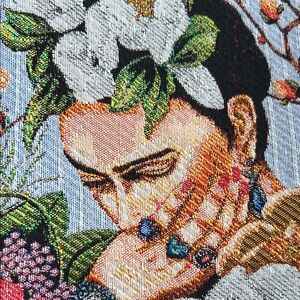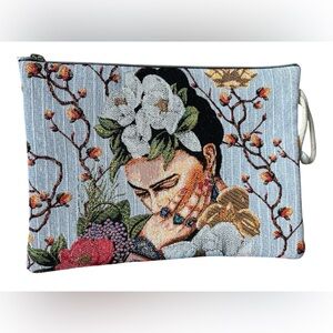 Woven tapestry clutch/pouch featuring an artistic portrait of Frida Kahlo. Zip closure. No flaws. Measures 11 x 8.
