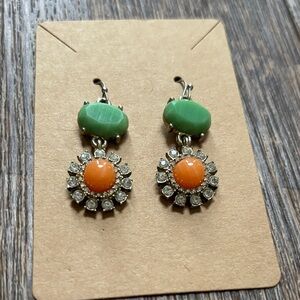 Add a pop of color to your outfit with these elegant green and orange dangle earrings. Perfect for any occasion.