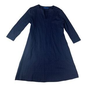 J Mclaughlin Octavia Dress. Women's size medium. Chic navy dress with jacquard print. Ideal for versatile styling.
