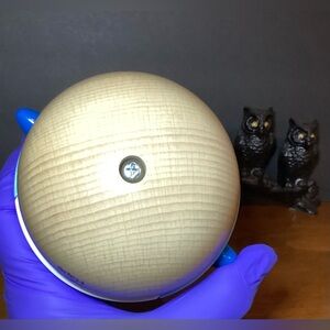 Hape musical penguin wobbler toy. Color is blue and white plastic with a wood bottom. Has movable arms, spins, wobbles and has a soothing tinkling musical sound! Very cute! This is a durable high quality interactive toy for ages 6 months plus. Preowned in good condition!