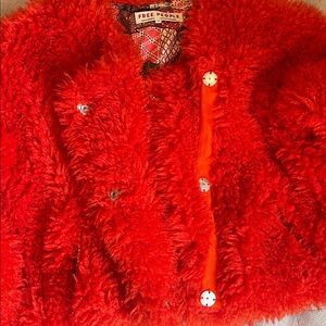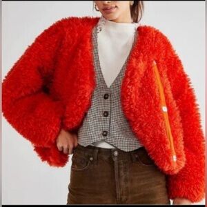 EUC. Free People Lena Teddy Jacket Orangish-red XS
