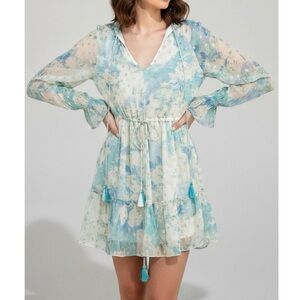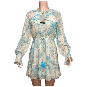 HEMANT & NANDITA Kaiyo Long Sleeves Mini Dress, Turquoise Blue, Small