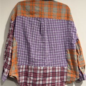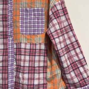 Better Be Women’s Patchwork Plaid Button-Down Shirt Multicolor Oversized Flannel