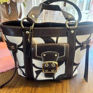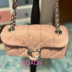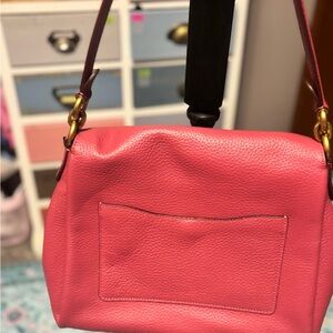 Chic and stylish Coach shoulder bag in vibrant pink. Features elegant gold hardware. Perfect for adding a pop of color.