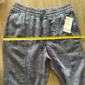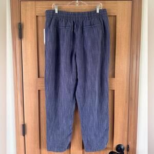 NWT Athleta 100% Linen Retreat Ankle Pull on Pants in Raining Violet Women’s size Large.