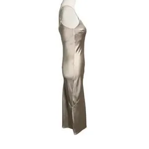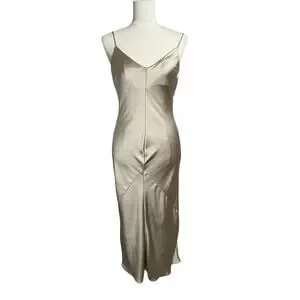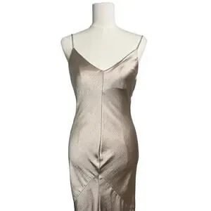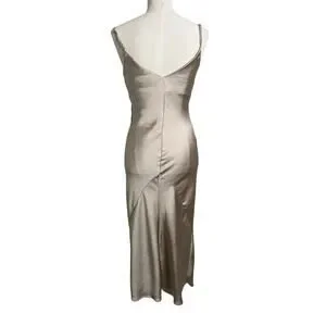 Line & Dot Slip Dress XS Beige Satin Midi Spaghetti Strap Formal 20s 30s Wedding