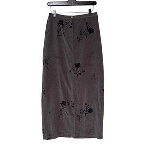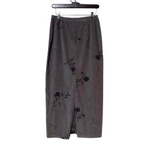 Vtg Norton McNaughton Gray Floral Print Maxi Skirt 6 ultra-suede embroidered