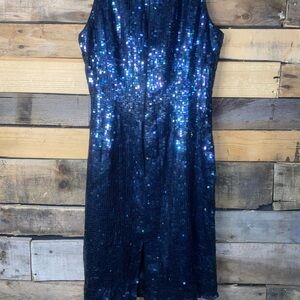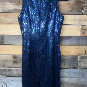 Dazzle in this elegant sequin navy dress, perfect for any special occasion.