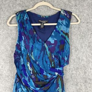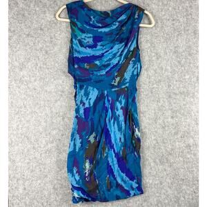 Diane Von Furstenberg Silk Dress Womens 2 Blue Faux Wrap Drapey Neiman DVF Y2K