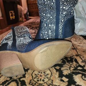 Step out in style with these stunning blue boots, adorned with sparkling rhinestones. Perfect for adding a touch of glamour to any outfit.