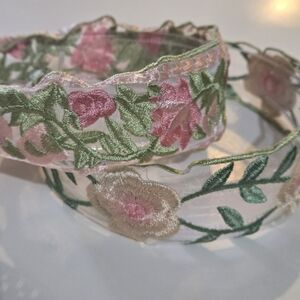 Elegant floral embroidered bangles featuring delicate pink and green hues. Perfect for adding a touch of sophistication to any outfit.