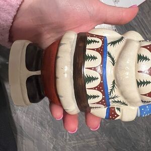 Charming Santa collectable by Vaillancourt. Features vibrant red and blue attire. Perfect for holiday decor. These are hand painted and the mold is broken after a certain amount are created which provides an opportunity for an increase in value.