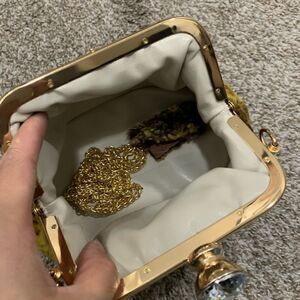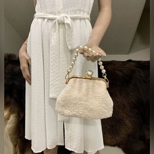 Brand new. Vintage style. Handmade from real shearling leather with metal frame. Very cute “diamond” shaped push lock closure. Spacious enough inside for your phone, wallet, keys, sunglasses, cosmetics, credit cards & other items.