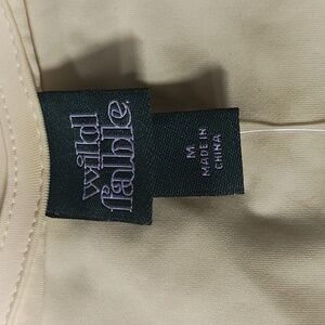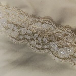 Stylish sleeveless top with delicate lace trim. Soft cream color enhances its elegance.